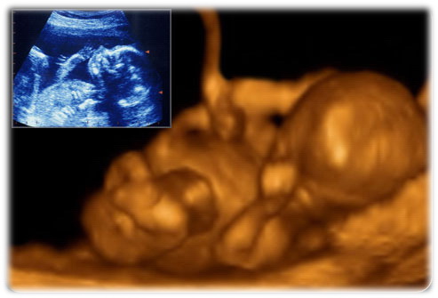 صوره ثلاثية الأبعاد. بسبب إكتمال تتطور الأذنين عند هذه المرحله يعتقد العلماء بأن الطفل يمكنه معرفة إن كان مقلوباً رأساً على عقب في بطن أمه ! ونتذكر في هذا السياق قوله تعالى " قال فمن ربكما يا موسى ﴿٤٩﴾ قال ربنا الذي أعطى كل شيء خلقه ثم هدى ﴿٥٠﴾ " {سورة طه}
