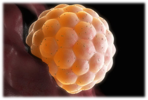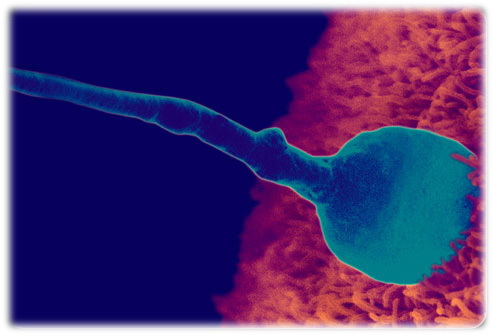 البدايه .. نرى هنا حيوان منوي في طريقه للدخول إلى داخل البويضه الأنثويه. يحتوي كل من الحيوان المنوي والبويضه على نصف الماده الوراثيه الضروريه لتكوين وتطور الجسم البشري. عملية دخول الحيوان المنوي للبويضه مركبه جداً. الذيل الذي نراه يساعده للوصول إلى البويضه. يحتوي الرأس على عدد من الإينزيمات الخاصه لإختراق جدران البويضه المختلفه. عند الدخول عبر الجدار الأخير يحدث نوع من الإنفجار الكيميائي على سطح البويضه وذلك لتغليفها ولمنع الحيوانات المنويه الأخرى من الدخول